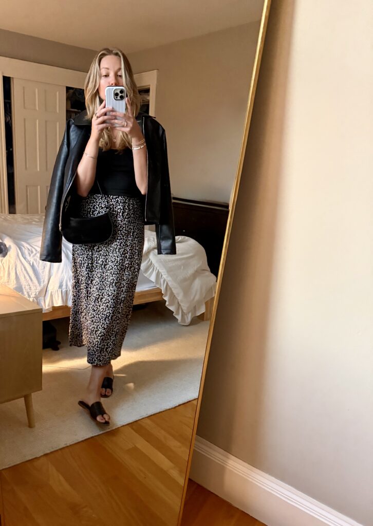 - An oversized leather jacket – The perfect layer to dress an outfit up or down. I’ve been loving this one from Oak + Fort for instantly adding edge to a casual look.