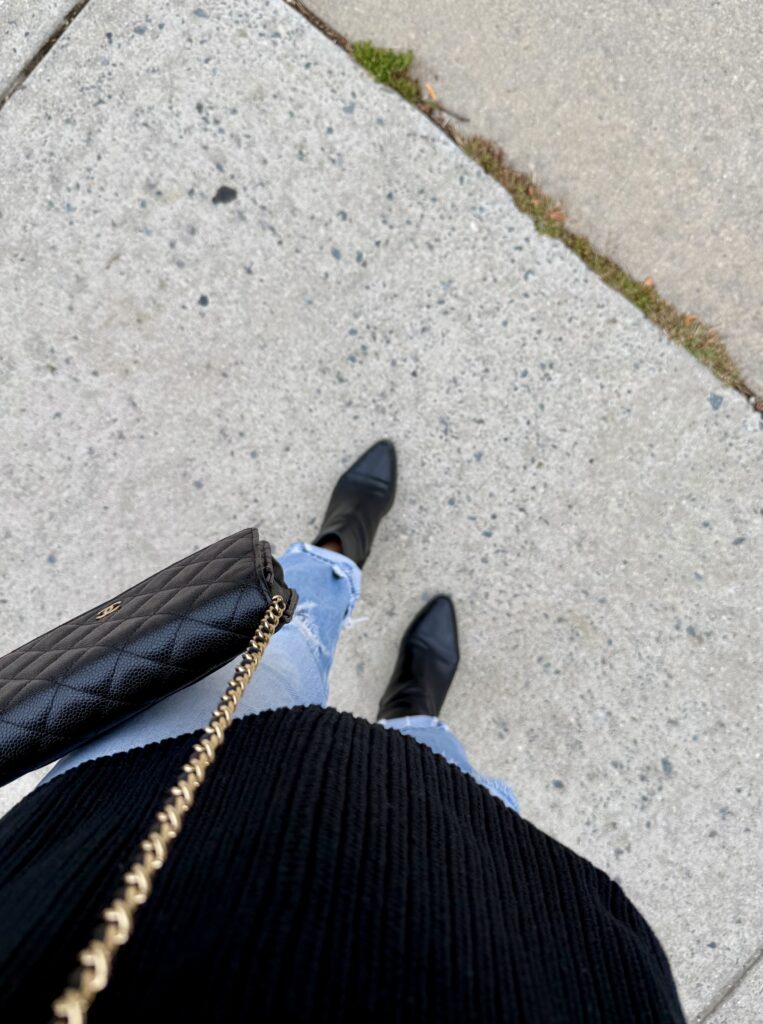 - Shoes, simplified – Three staples are all you need: a pair of elevated sneakers, a classic neutral bootie that can take you from daytime errands to dinner plans, and a tall black heeled boot to dress up any look.